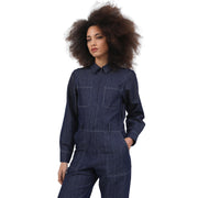 Effortlessly chic and endlessly versatile, by LC studio jumpsuit is a modern wardrobe essential. Crafted from soft premium 100% cotton denim, it offers a lightweight feel with a structured look. The sleek front zip-through opening adds a contemporary edge, while the straight, medium-width leg provides a balanced and flattering fit. Functional front and back pockets bring a touch of utility style, making this piece as practical as it is stylish. Dress it up or keep it casual this jumpsuit is your go-to for every occasion.
