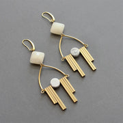From US designer David Aubrey this timeless and bold earrings are hand crafted in brass, embellished with magnesite stone and with 18k gold plated hoops.