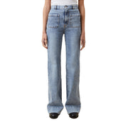 St. Monica is a bold sailor pant style infused with Jeanerica’s DNA, completed with patch pockets on the front and back. Features a super high-rise and bold, flared leg. The jeans are primarily made from organic cotton blended with recycled polyester and limited amount of elastane. This special combination developed by Jeanerica gives the garment an effortless stretch that retains the shape over time.