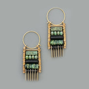 David Aubrey Brass Green Stone Fringe Hoop Earrings