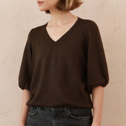 IMAGO Gaia top is crafted in Italy from soft fine cashmere and silk blend. Designed with a flattering V-neckline and balloon sleeves, this top effortlessly combines timeless and feminine with a modern edge.
