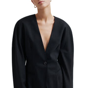 Second Female V-neck blazer. The blazer is made in light wool-blend suiting fabric. Featuring a V-neckline and button-through fastening. Padded shoulders with no shoulder seam and long sleeves. Welt pockets at front. Fitted seams at front and back. Fully lined. Slim fit.
