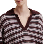 Second Female striped pullover is made in a soft and stretchy mohair-wool blend with slightly fluffy quality. Featuring a V-neckline with collar, dropped shoulders and long sleeves. Contrast rib at collar, cuffs and bottom hem. Relaxed, comfy fit.