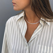 summerstories Cropped shirt is crafted in Italy from the most luxurious silk with fine stripes. Cut to a cropped silhouette, perfect to wear casual with jeans or for a more formal occasion.