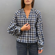 summerstories Joan Blouse is crafted in Italy from soft cotton with checks. The design takes inspiration from 70s boho, cut in a loose silhouette with balloon sleeves. Perfect to wear casual with jeans.