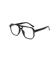 Super retro ladies reading glasses featuring an attractive slender frame with large square lenses in a black finish. These readers have spring hinges for added fit and comfort, blue light blocking  and soft pouch is also included.