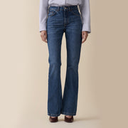New from Jeanerica 'Moda' is a mid-waist denim with a slim flared leg. Featuring a fitted top, button fly and a slim leg until the knee enhancing a sleek silhouette.